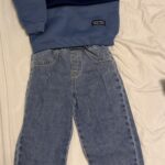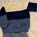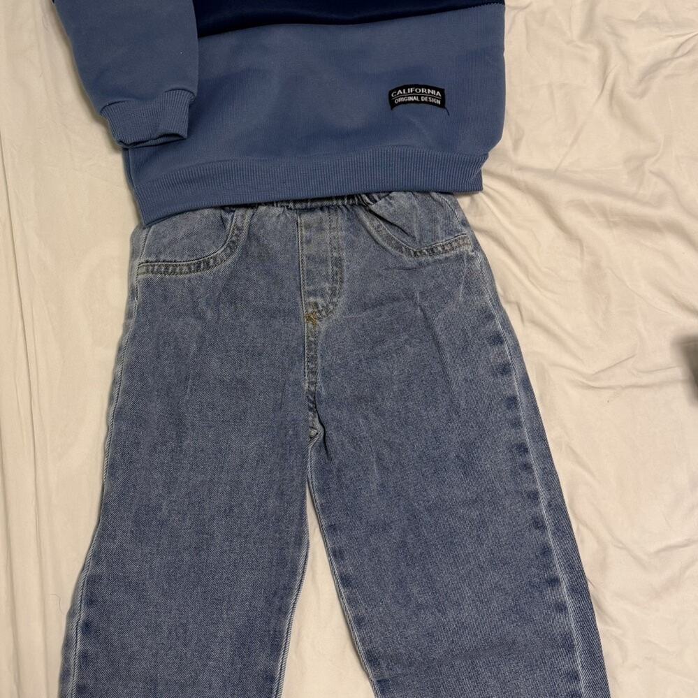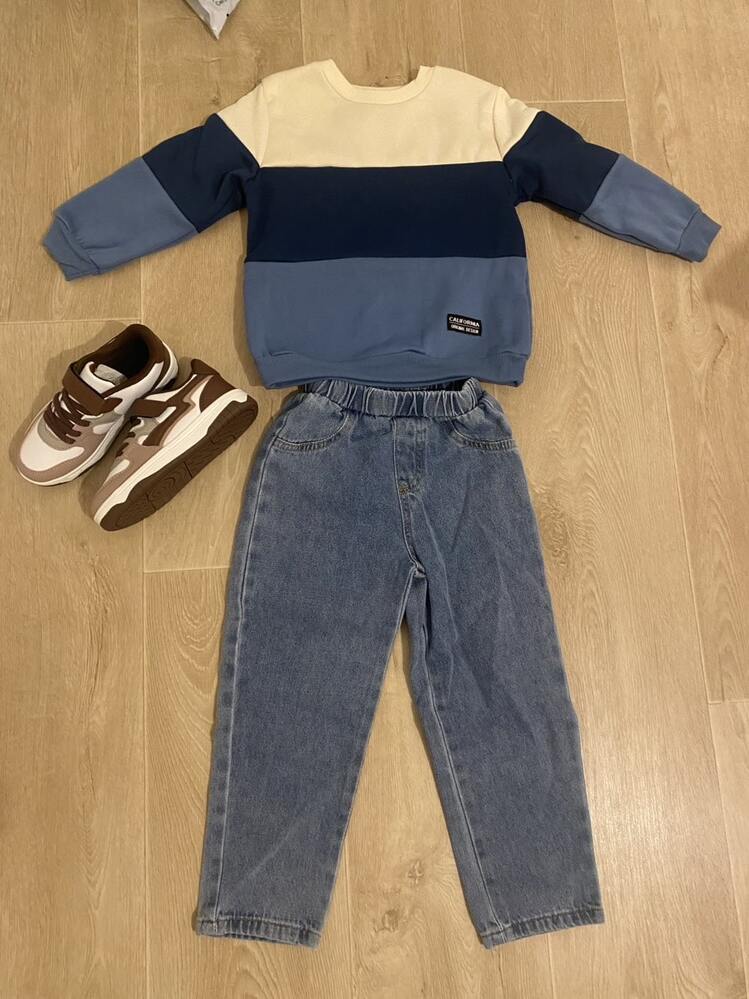 Ensemble Sweat-shirt à col ras du cou manches longues bicolore et pantalon en jean