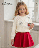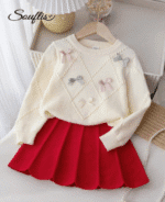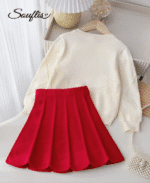 2 pièces/set Pull à manches longues et jupe plissée Rouge / 6ans