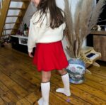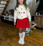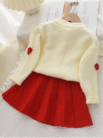 Ensemble tricoté chaud de 2 pièces pour bébé fille en hiver, ensemble mignon pull à nœud et jupe plissée, doux et agréable pour la peau