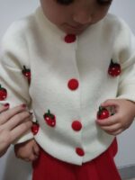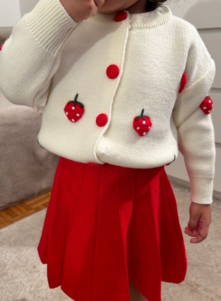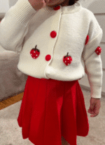2 pièces/set Top à manches longues avec imprimé de fruits et jupe plissée