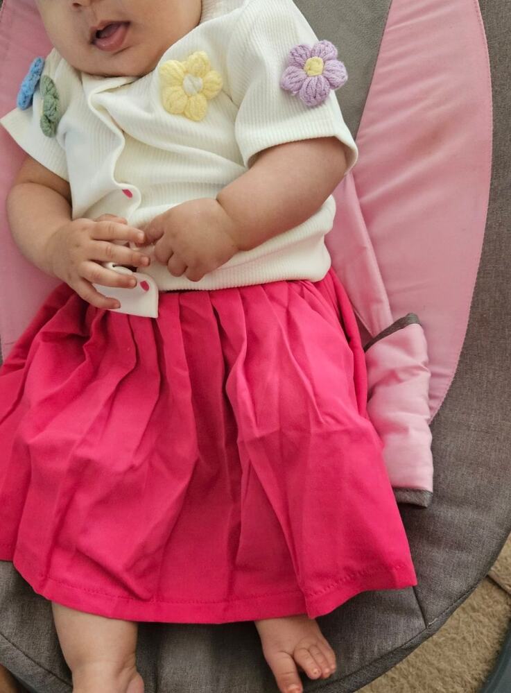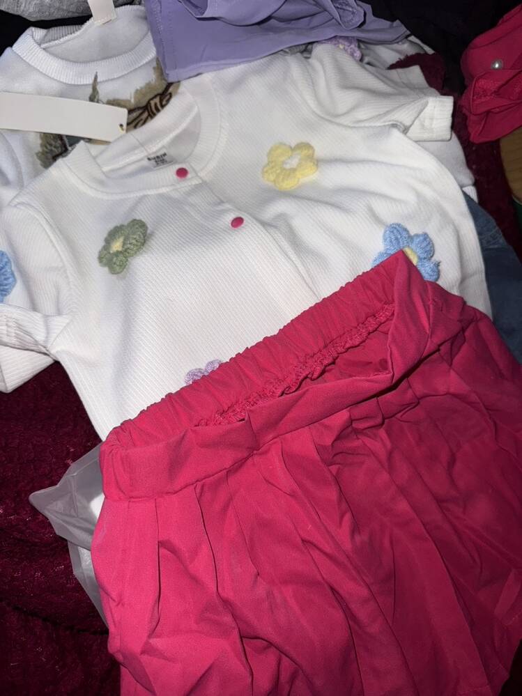 SHEIN 2 pièces Tenue d’été pour bébé fille : T-shirt en tricot brodé + jupe plissée de couleur unie