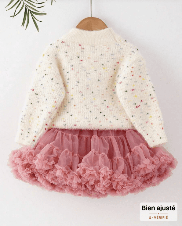 Ensemble jeune fille de pull tricoté 3D confortable et minimaliste avec jupe (4-5-6)