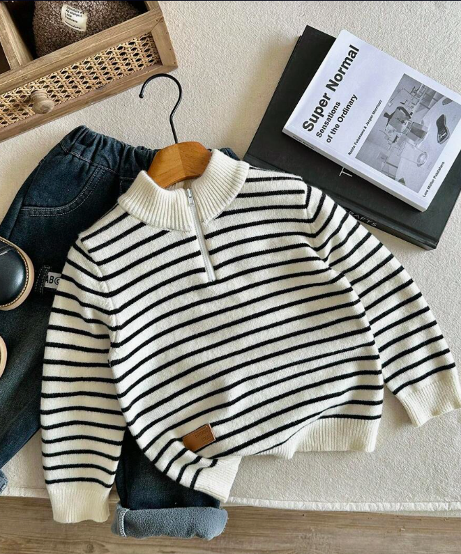 Jeune pull décontracté Noir et Blanc / 7ans